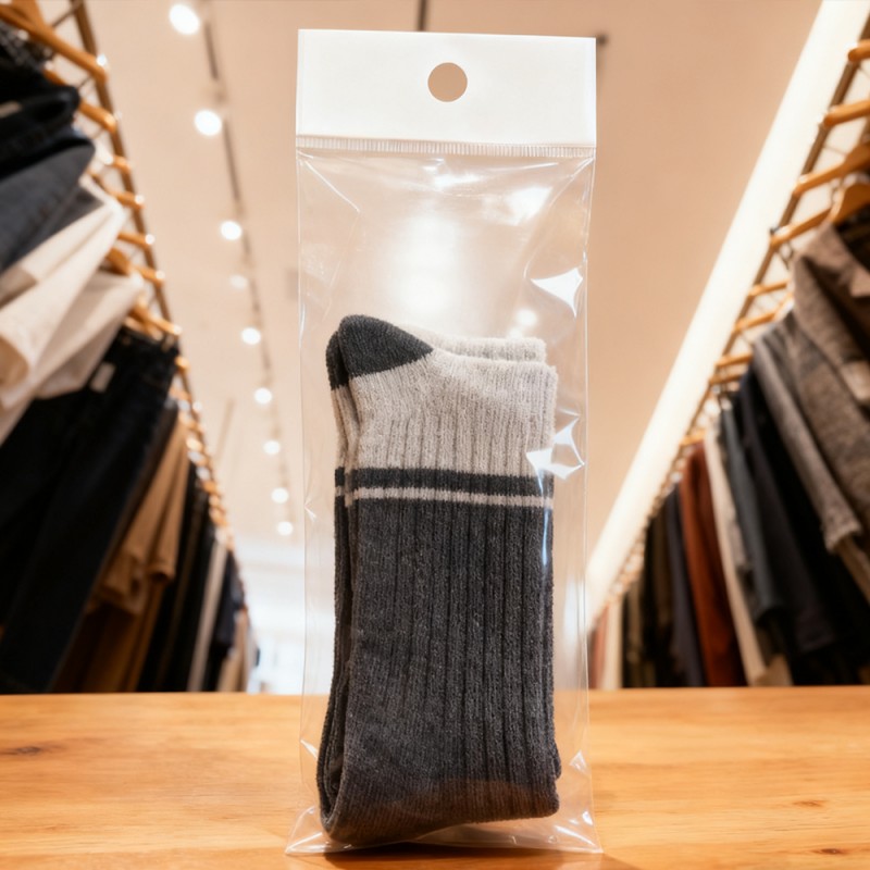 Customizable Design: Customize packaging bags according to your brand's needs, with adjustable size, thickness, and sealing options (such as self-adhesive sealing, heat sealing). The options for rolls or individual bags can accommodate both automatic and manual packaging processes. You can also add card heads for convenient display.