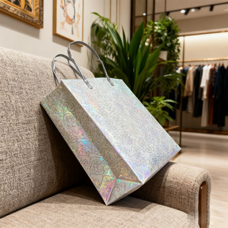 Reusable Design: The combination of a sturdy paper core and a tough laminated surface makes this bag built to last. Its ability to maintain its sparkle over time encourages repeated use, turning your customers into walking brand ambassadors long after the initial purchase.