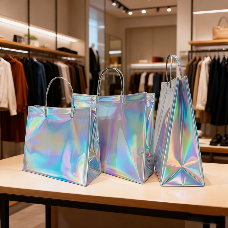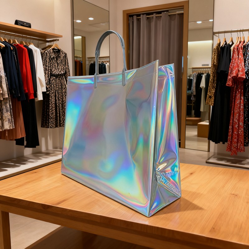 QINGDAO RED GOLDEN STAR PACKAGING AND PRINTING CO., LTD launches this Laser Film Laminated Gift Tote Bag. It has a captivating iridescent effect that changes color with movement. This innovative package combines high-quality materials with specialized laser film lamination technology to create a dazzling rainbow spectrum that uniquely captures light. It is waterproof and durable, with stunning visual appeal and practical functionality. This reusable tote bag is used for luxury gifts, brand promotions, and special events, serving as a striking brand ambassador while providing an unforgettable unboxing experience.